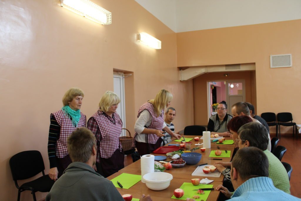 Kopā tika pagatavots gards ābolu deserts ar augļiem, ogām, šokolādi un zaļumiem. Tāpat, no papīra un dzijas tika veidoti groziņi našķiem. Aktīvie un darbīgie centra iedzīvotāji ar entuziasmu un aizrautību izgrieza, bēra, pildīja, pina, līmēja, tamborēja un priecājās par katru paveikto darba posmu un visu padarīto darbu kopā.